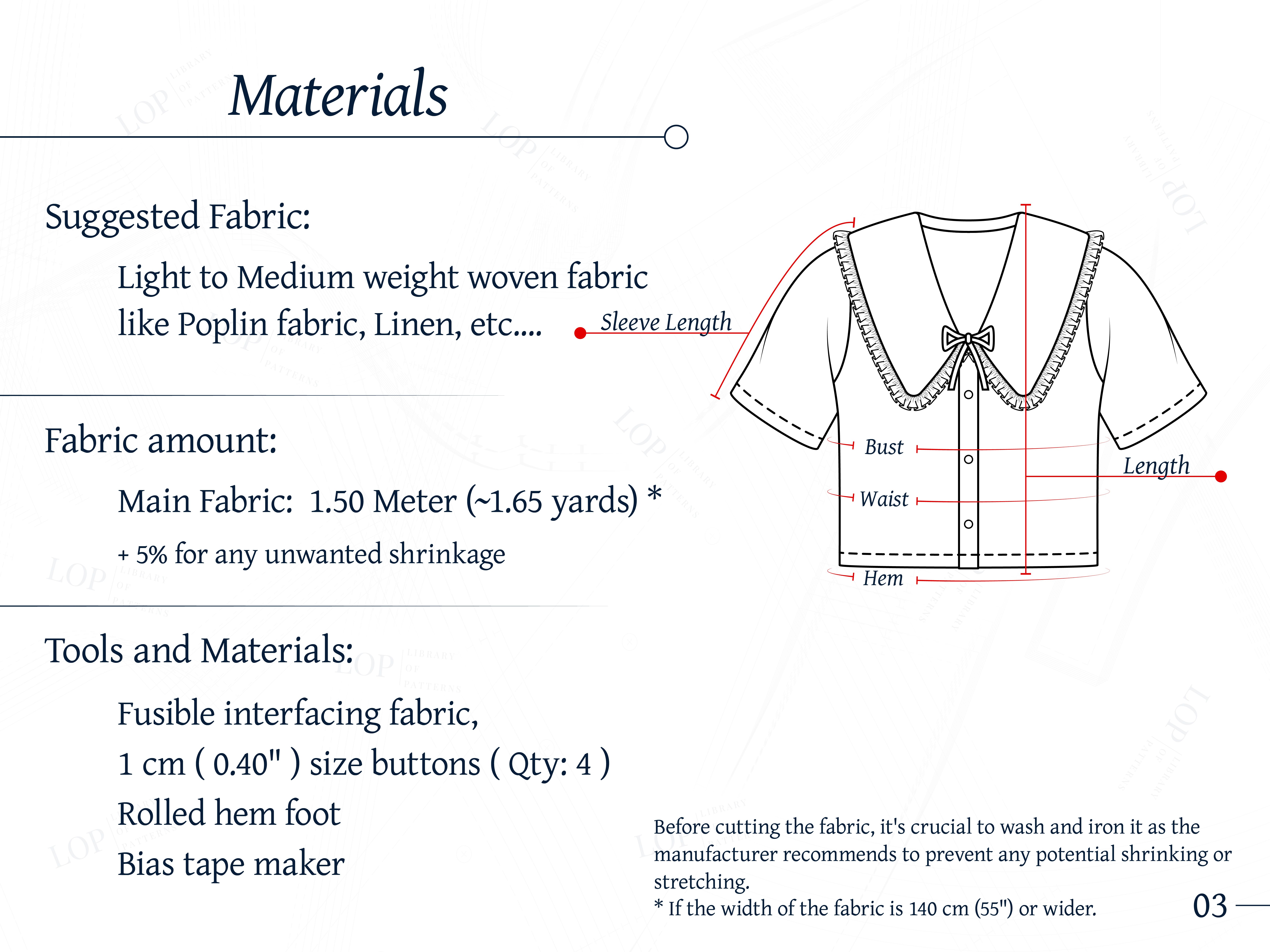 - Light weight woven fabric like Poplin fabric, Linen, etc...