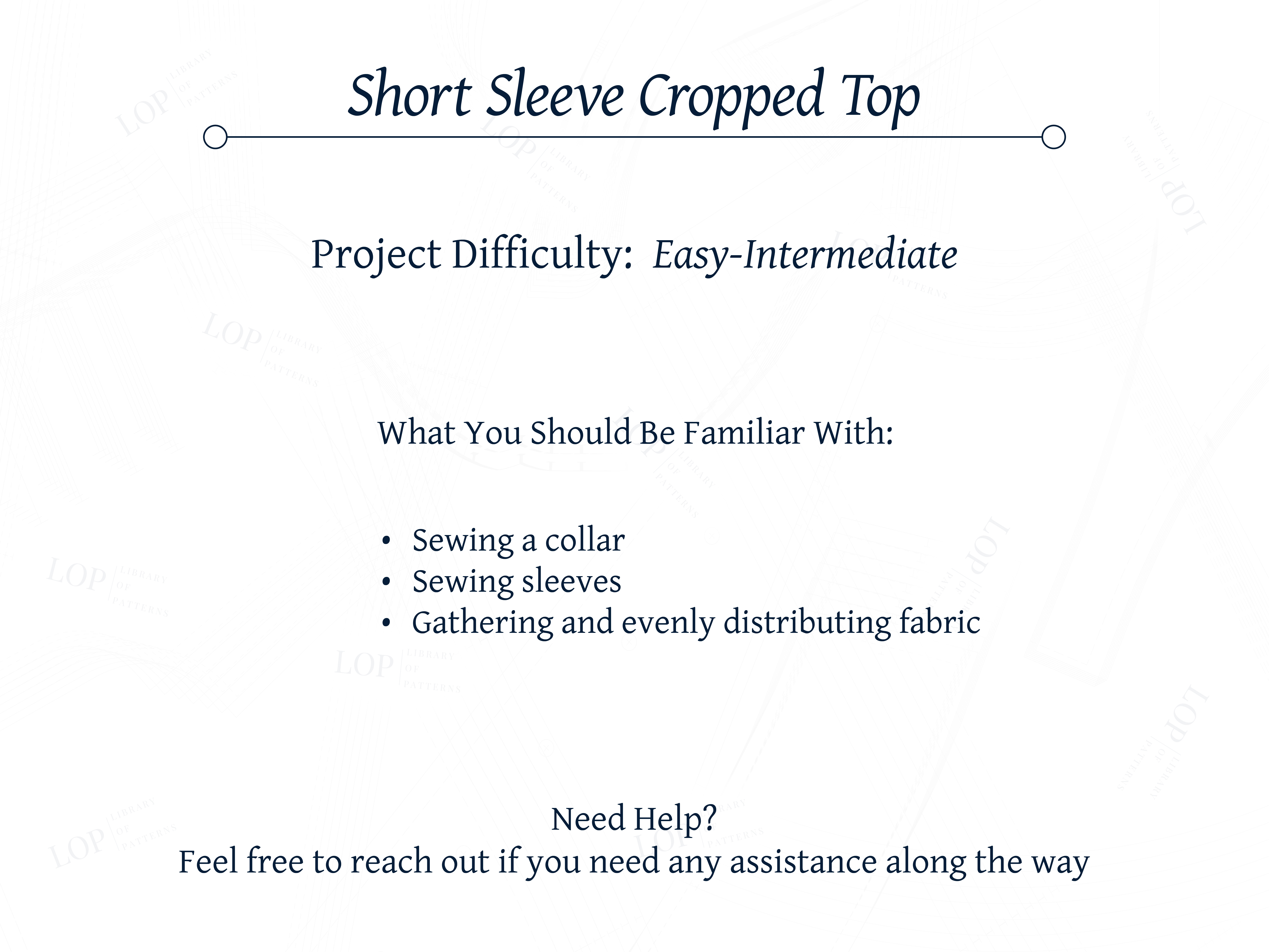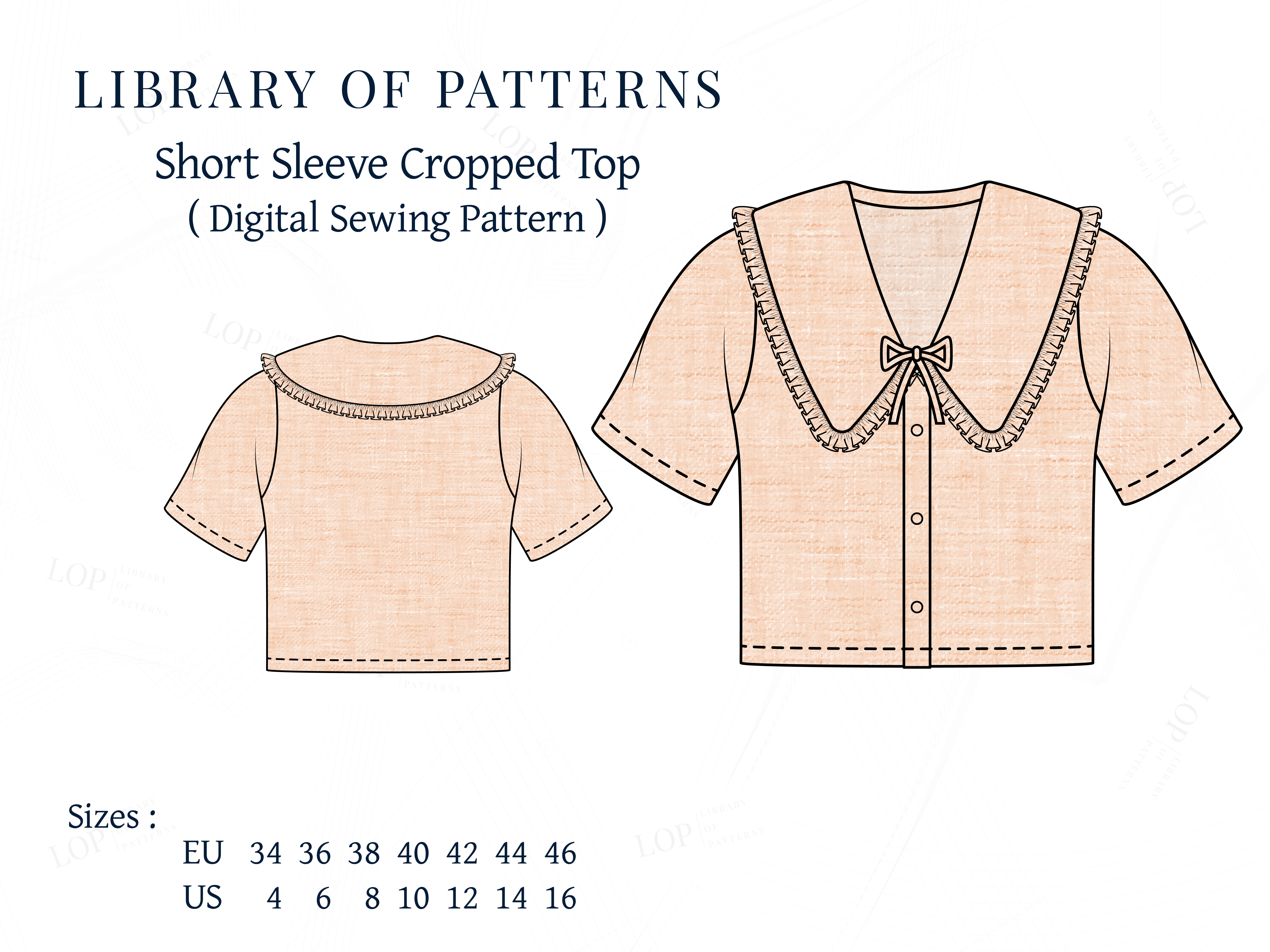 Short Sleeve Cropped Top Pattern, Peter Pan Collar Blouse, PDF Sewing Pattern with Written Instructions